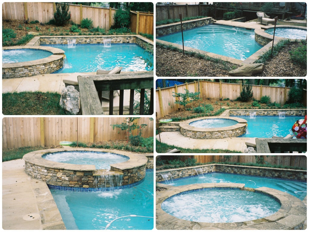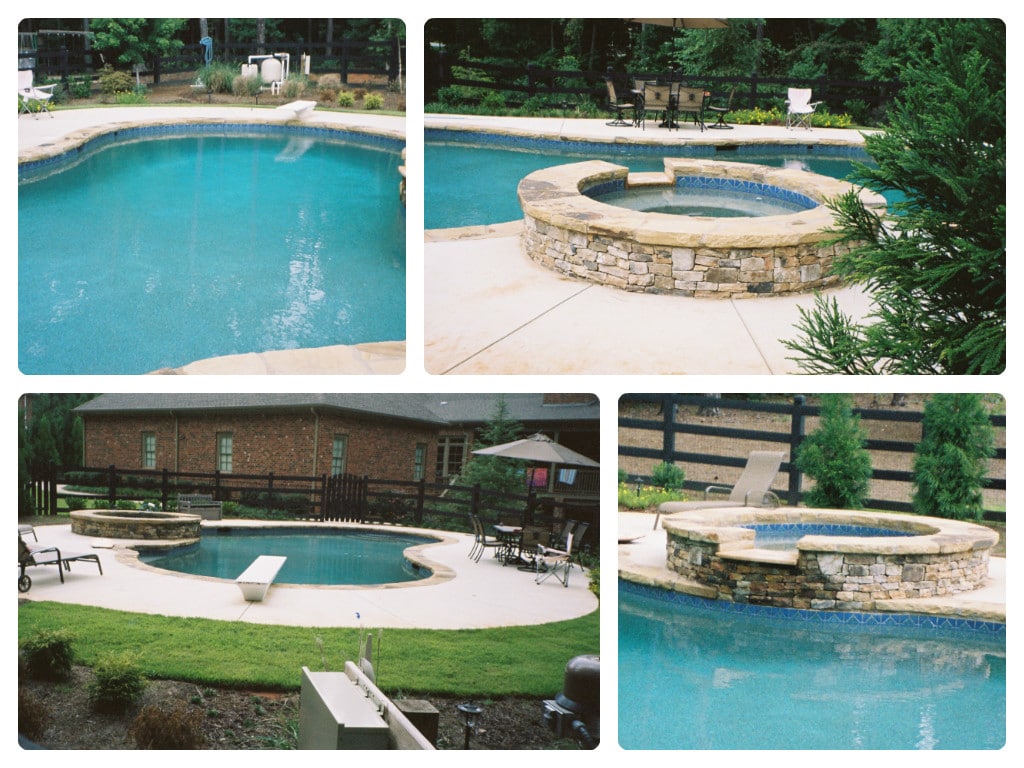 - Gunite pools are 100% custom designed. They offer the ability to build-in swimouts, custom benches, ledges, grottos, bar stools, spas, streams, waterfalls, infinity edges, and beach entries.